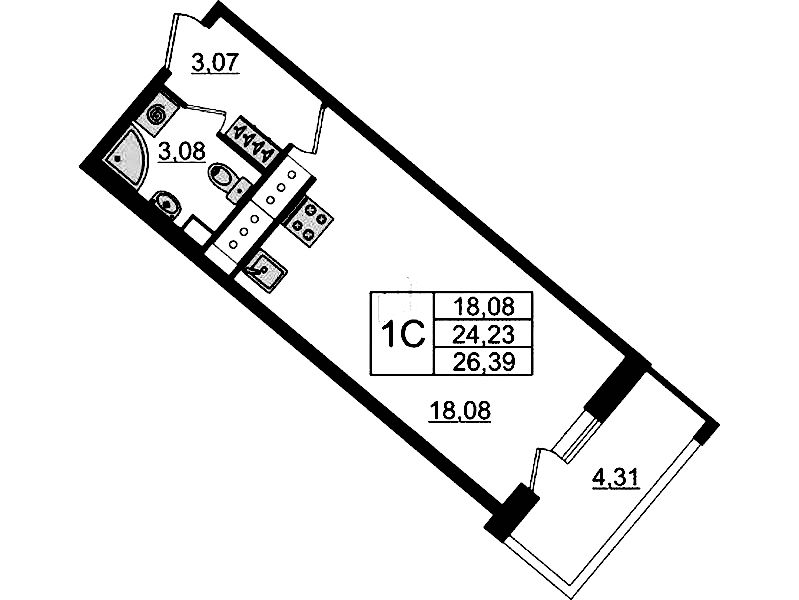 - Площадь24,4 м2