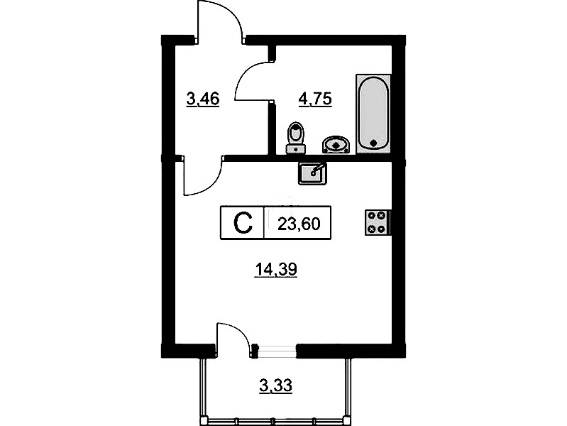 Квартира-студия на 11-ом этаже 23,2 кв.м
