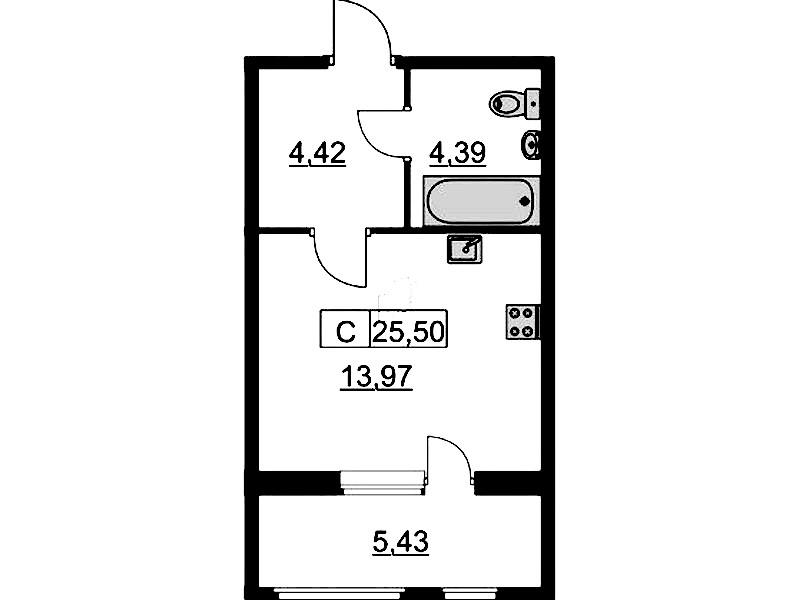 Квартира-студия на 7-ом этаже 25,4 кв.м
