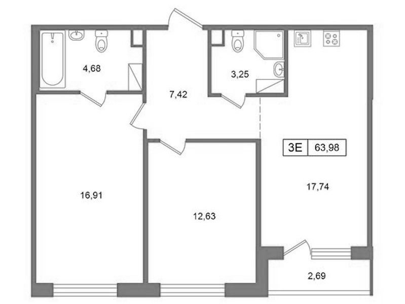 - Площадь63,98 м2