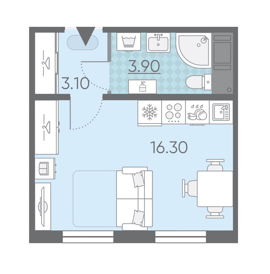 Квартира-студия на 13-ом этаже 23,3 кв.м