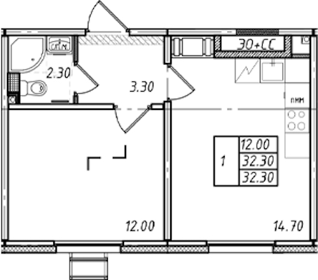 Однокомнатная квартира на 9-ом этаже 32,3 кв.м
