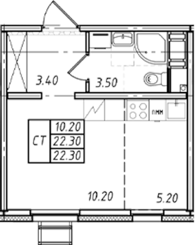 Квартира-студия на 11-ом этаже 22,3 кв.м