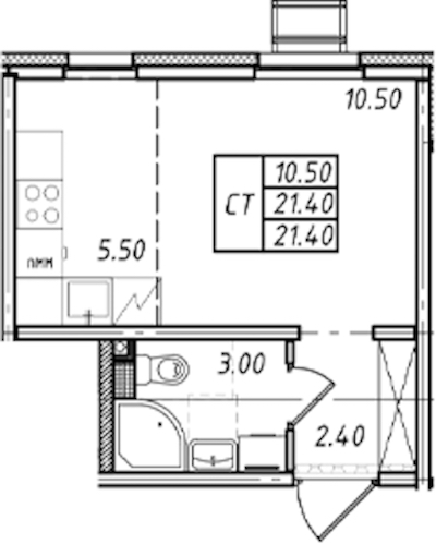 • Площадь21,4 м2