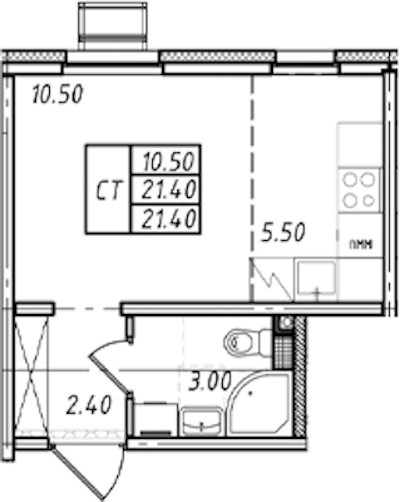 Квартира-студия на 12-ом этаже 21,4 кв.м