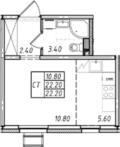 Квартира-студия на 2-ом этаже 22,2 кв.м