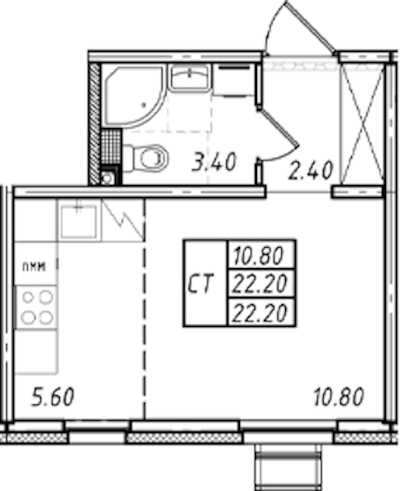 • Площадь22,2 м2