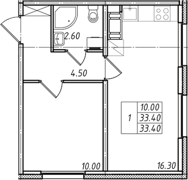 - Площадь33,4 м2
