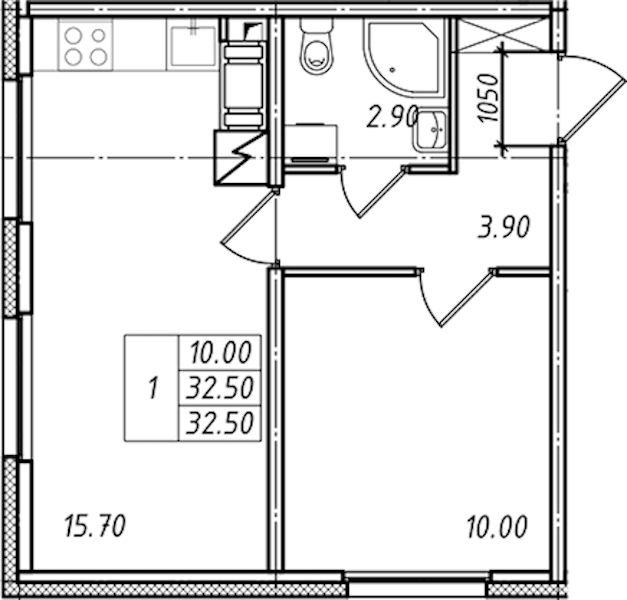 - Площадь32,5 м2