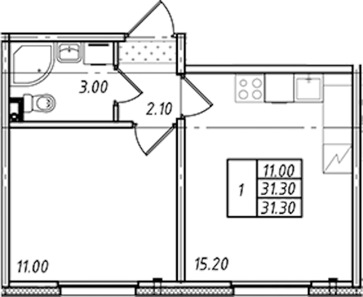- Площадь31,3 м2