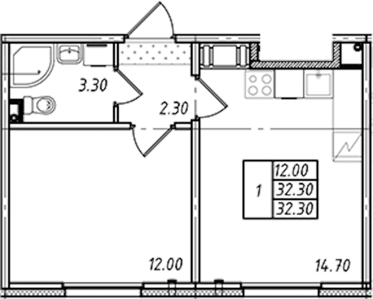 - Площадь32,3 м2