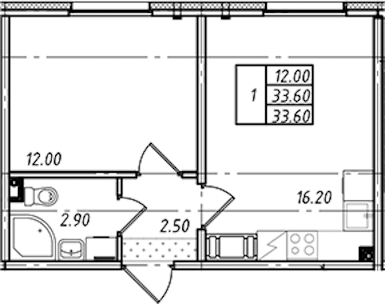 - Площадь33,6 м2