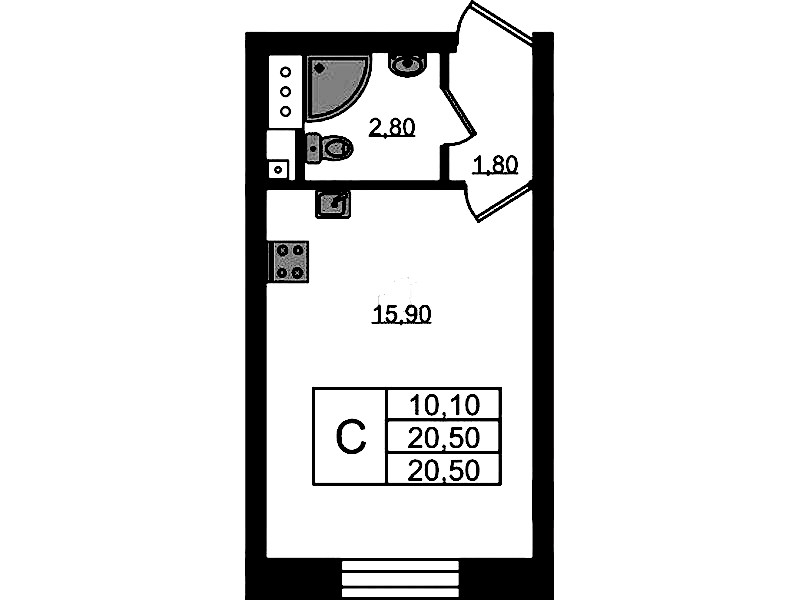 Квартира-студия на 14-ом этаже 20,5 кв.м
