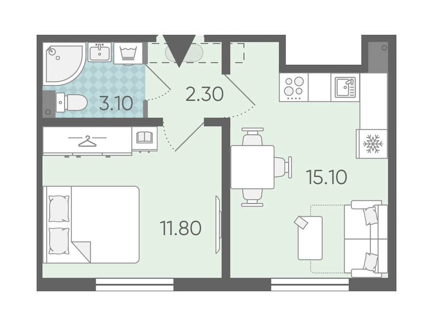 Однокомнатная квартира на 1-ом этаже 32,3 кв.м