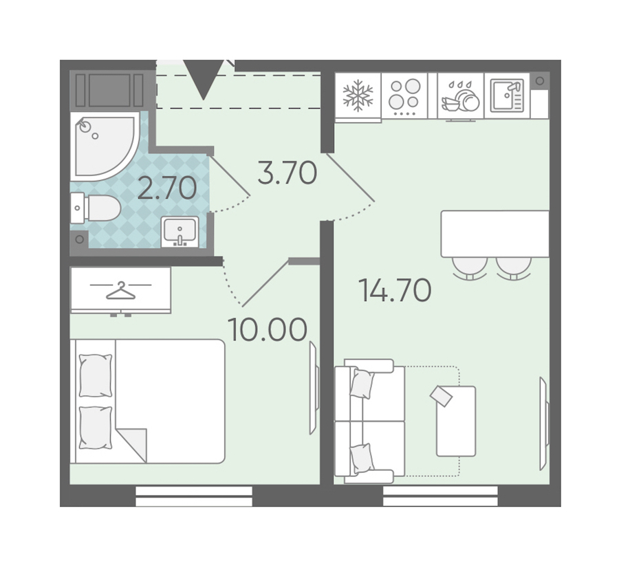 Однокомнатная квартира на 11-ом этаже 31,1 кв.м