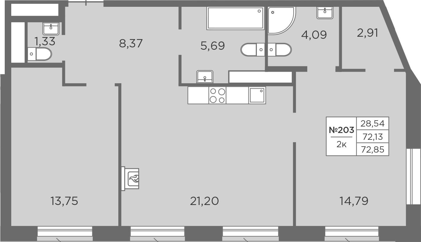 - Площадь72,85 м2