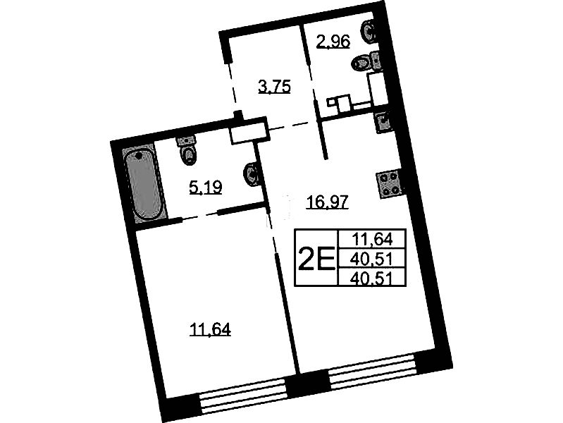 - Площадь40,51 м2