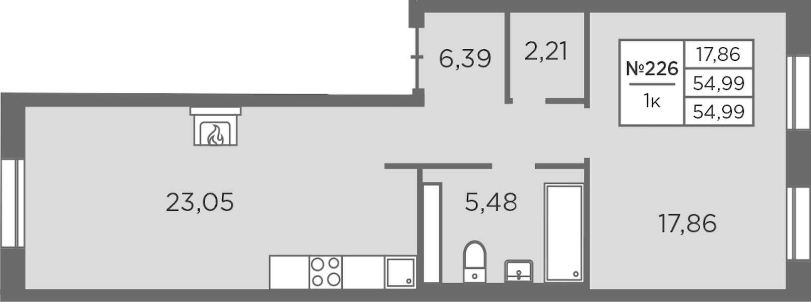 - Площадь54,99 м2