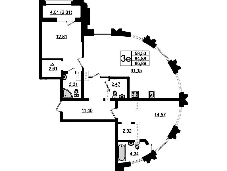 Двухкомнатная квартира на 19-ом этаже 86,89 кв.м