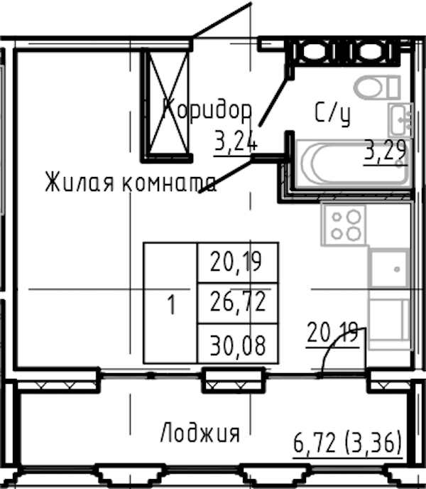 - Площадь30,08 м2