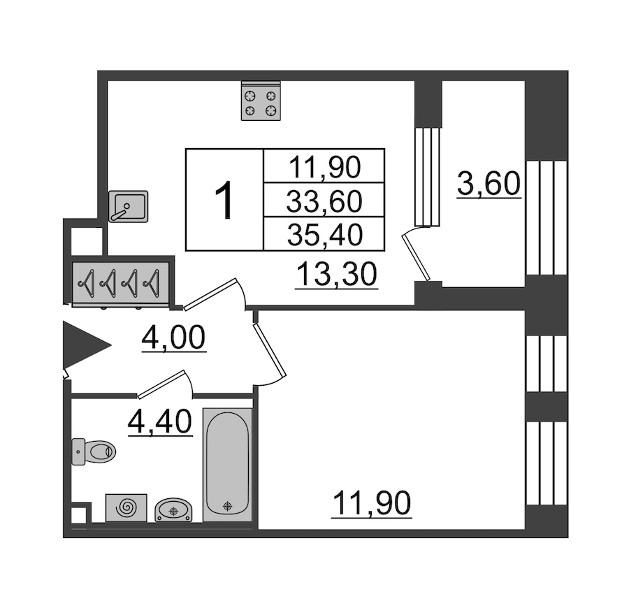 - Площадь34,4 м2