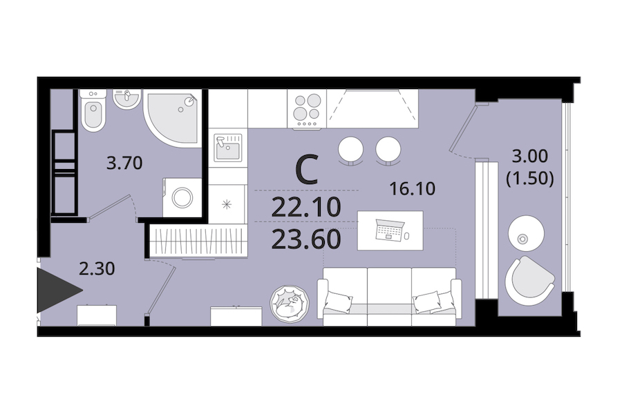 • Площадь23,6 м2