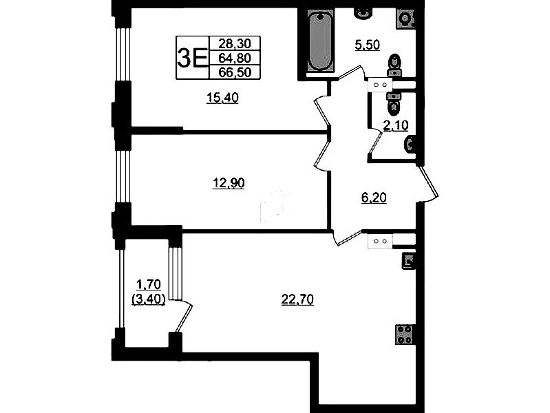 - Площадь66,5 м2