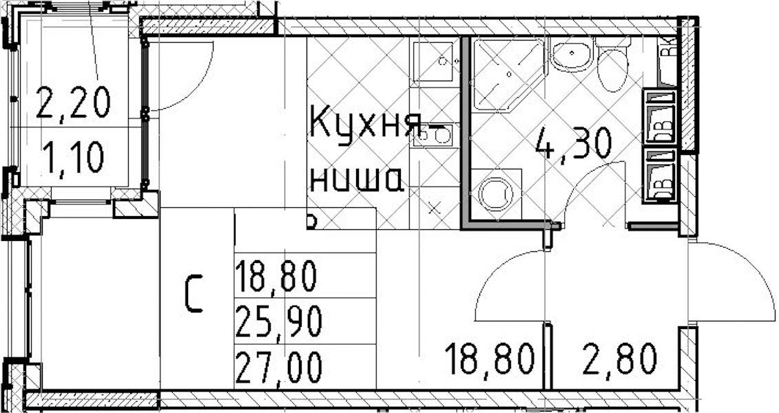 - Площадь27 м2