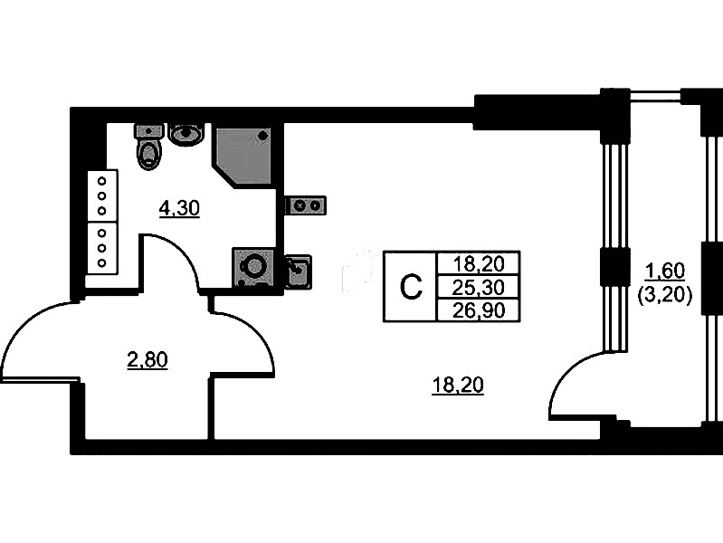 - Площадь26,9 м2