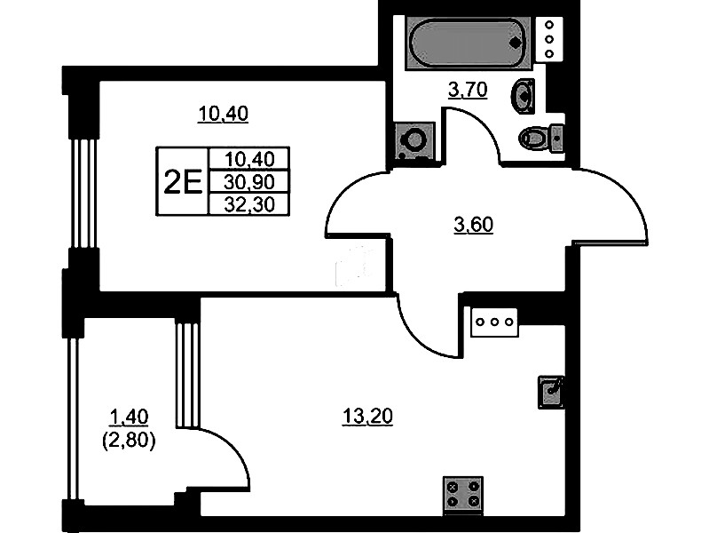 - Площадь32,3 м2