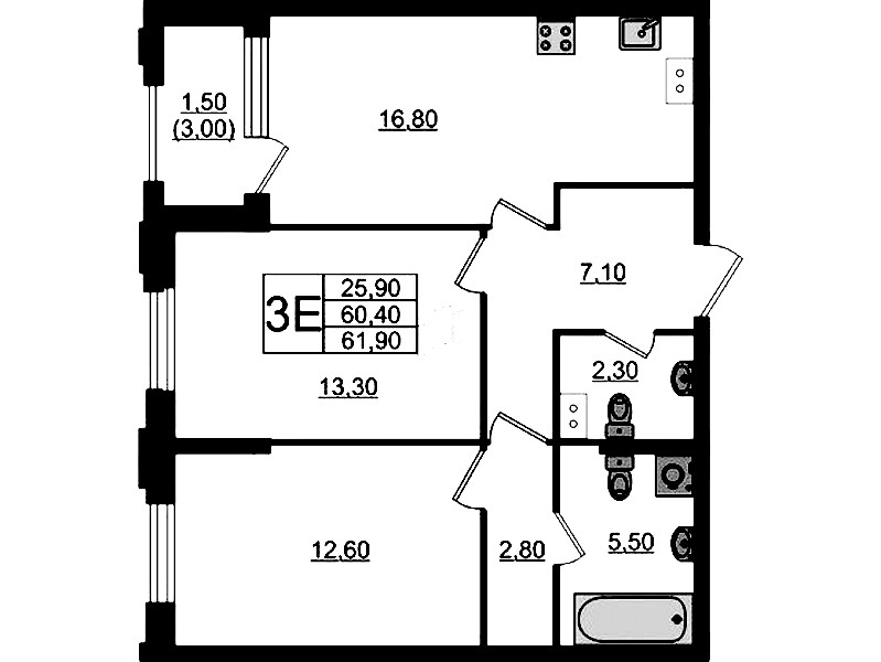 - Площадь61,9 м2