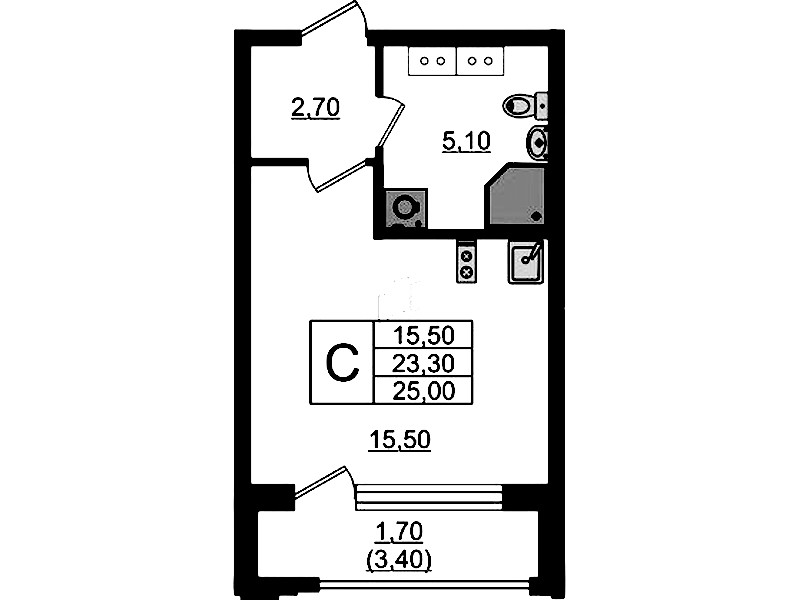 - Площадь25 м2