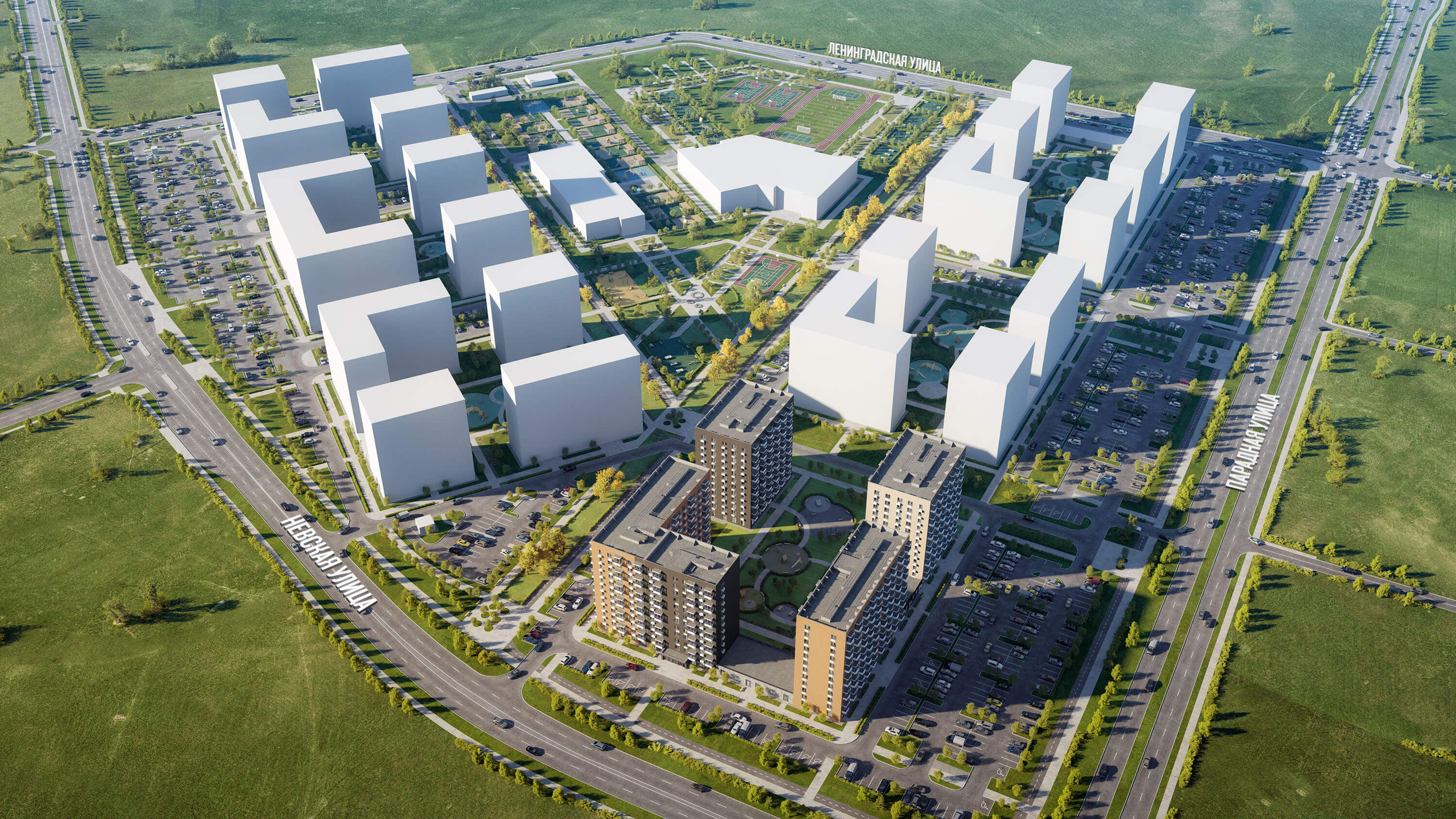 «Таллинский парк» включает 16 жилых домов, детский сад и школу. В проекте появится центральный сквер с обильным озеленением, а через весь квартал протянутся широкие пешеходные бульвары. В зелёных дворах-парках будут оборудованы современные детские и спортивные площадки, обустроены места для отдыха. На первых этажах разместятся магазины, кафе и другие сервисы.