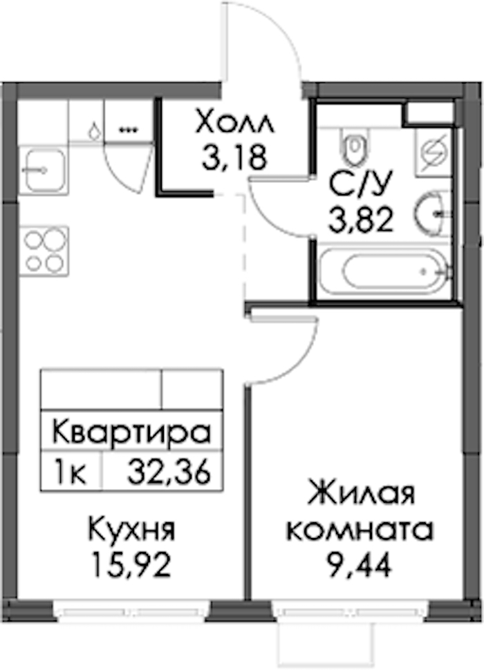 - Площадь32,36 м2
