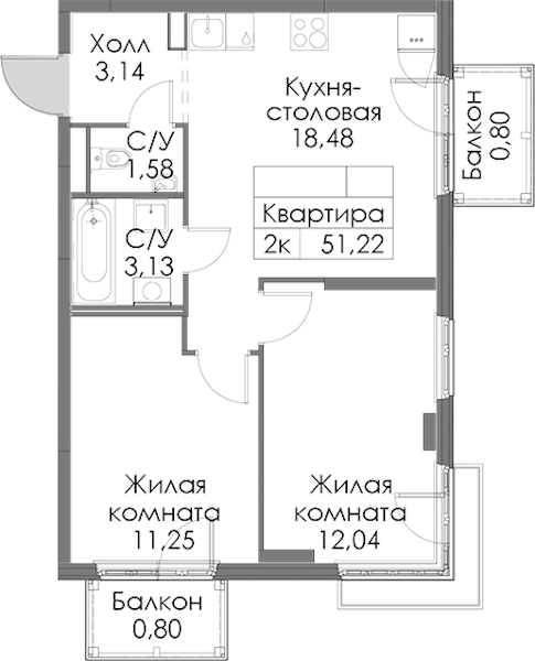 - Площадь51,22 м2