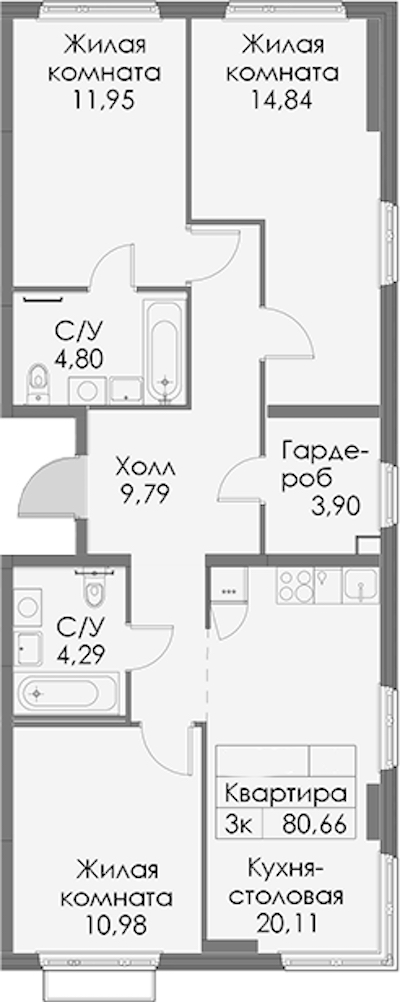 - Площадь80,66 м2