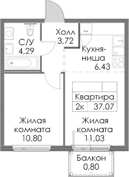 • Площадь37,07 м2