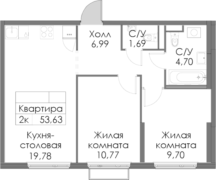 - Площадь53,63 м2