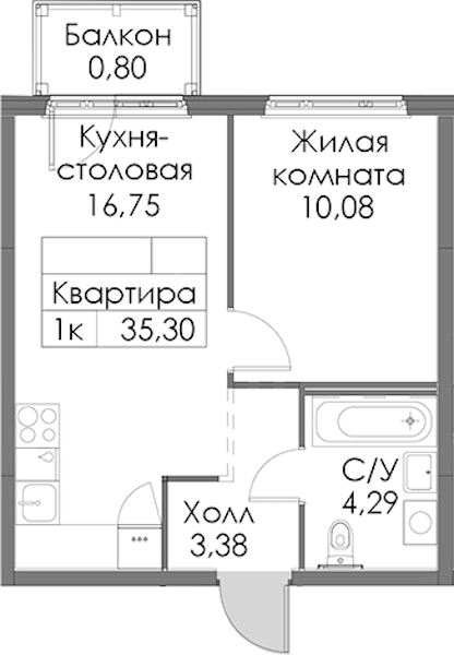 - Площадь35,3 м2