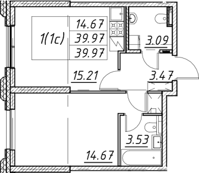 - Площадь39,97 м2