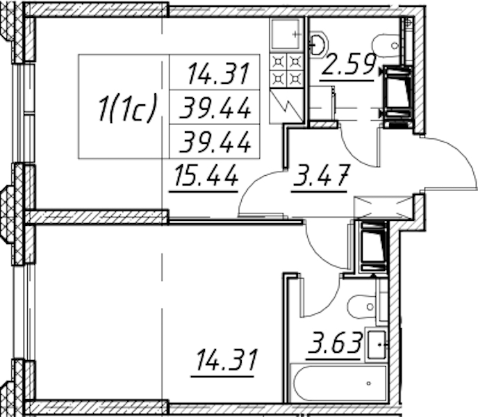 - Площадь39,44 м2