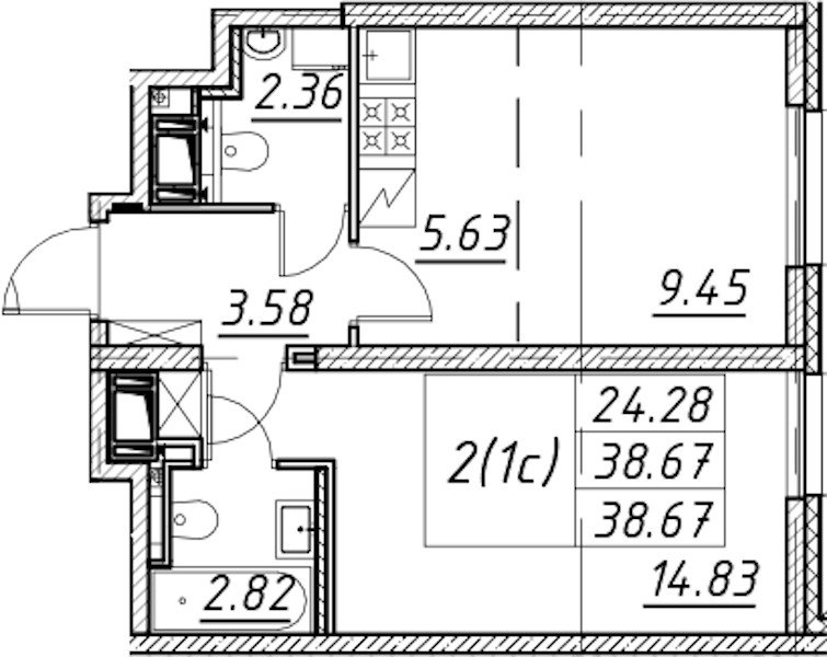 - Площадь38,67 м2