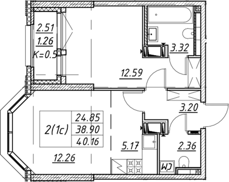 - Площадь40,16 м2