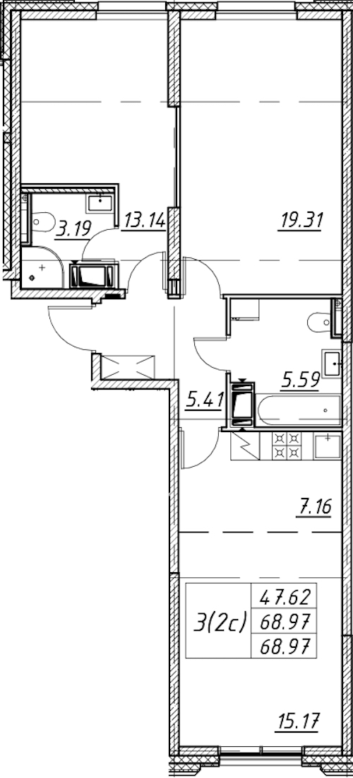 - Площадь68,97 м2