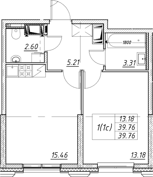 - Площадь39,76 м2