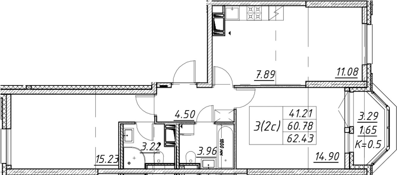 - Площадь62,43 м2