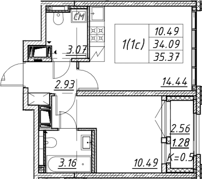 - Площадь35,37 м2