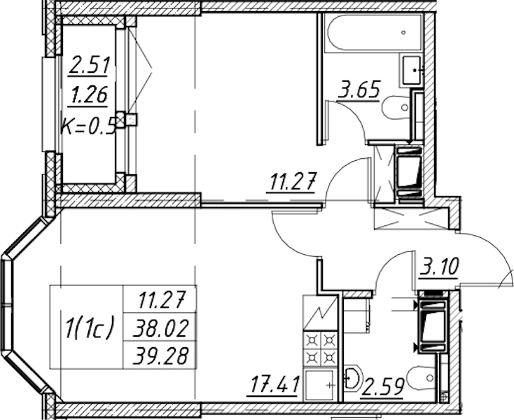 - Площадь39,28 м2
