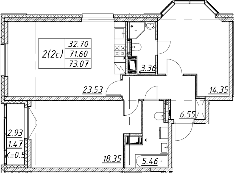 - Площадь73,07 м2