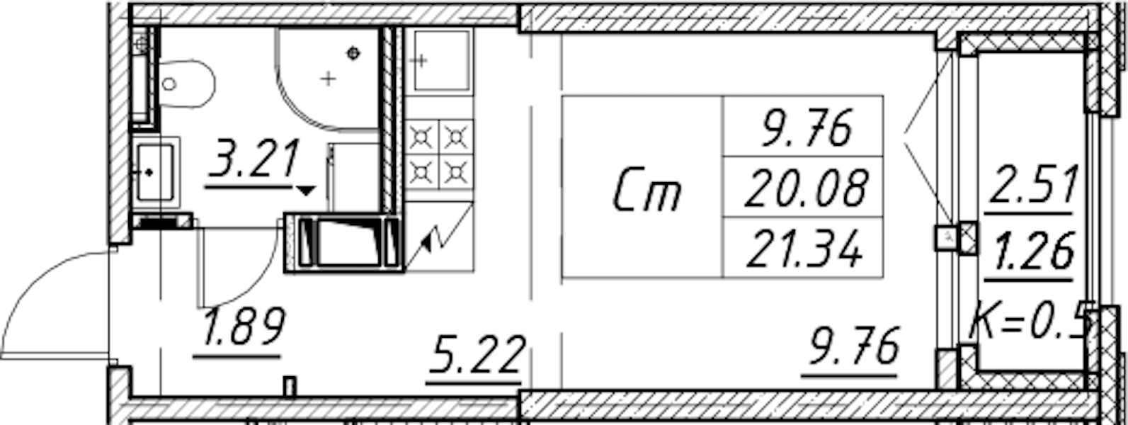 - Площадь21,34 м2